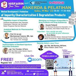 Selama masa pandemi ini, Himpunan Seminat Farmasi Industri Jawa Timur (HISFARIN JATIM) kembali mengadakan Rakerda & Pelatihan untuk Apoteker Industri yang berkolaborasi dengan PT Kromtekindo Utama dan PT Merck Life Sciences.